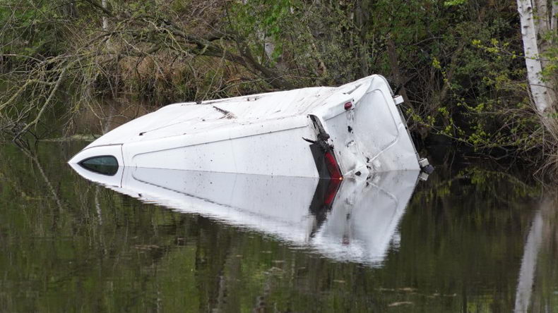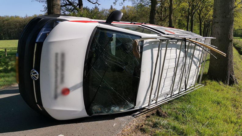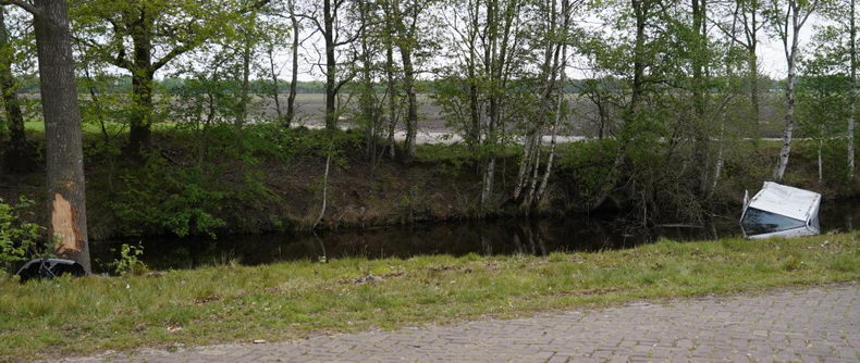 Een bestelauto is zaterdagmorgen tegen achten te water geraakt na een ongeluk op de Griendtsveenstraat in Weiteveen. |