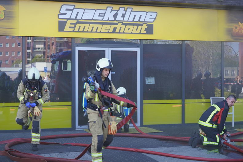 Vrijdagmiddag even na tweeën is brand uitgebroken in snackbar Snacktime Emmerhout aan de Houtweg in Emmen. |