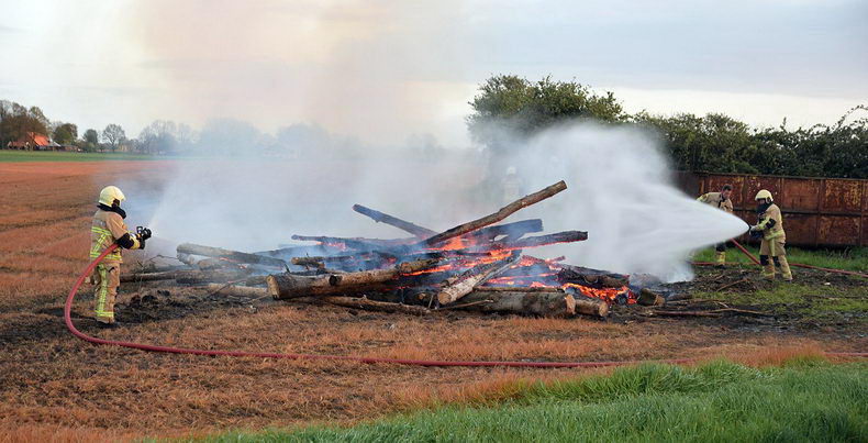 Aan de Nieuweweg in Daarlerveen heeft de brandweer van Vroomshoop brand in een houtstapel en wat boomstammen geblust. Mogelijk gaat het om een verlaat paasvuur. |