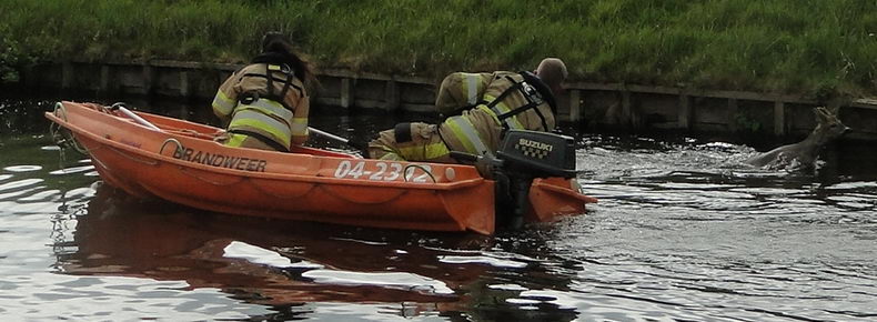 Zondagmorgen rond kwart voor elf kreeg de blusgroep De Krim opdracht naar de Krimweg bij Coevorden te rijden: er was een dier in de Lutterhoofdwijk beland. Het bleek te gaan om een reebokje, dat er niet in slaagde op eigen kracht uit het water te komen. |