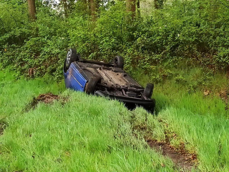 | Klazienaveen: auto op z'n kop in de sloot |