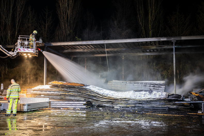 | Onder een vrijstaand afdak achter het bedrijfsverzamelgebouw Koopcentrum West5 aan de Hessenweg West heeft rond het avonduur een forse brand gewoed. Een bluspoging met een handblusser mocht niet baten. De brandweer werd rond kwart voor zes opgeroepen voor de brand, die woedde in een partij sandwichpanelen met isolatiemateriaal en veel rook veroorzaakte. De brandweer rukte met meerdere wagens uit al snel na het sein ‘middelbrand’. Ook de hoogwerker van de brandweer Hardenberg werd ingezet. Met een door een brandweerman bestuurde vorkheftruck werden de panelen gescheiden, zodat ze goed konden worden nageblust. Het is nog onduidelijk hoe de brand is ontstaan en hoe groot de schade is. Het afdak liep in ieder geval zware schade op; evenals uiteraard de voorraad panelen. Er raakte niemand gewond |