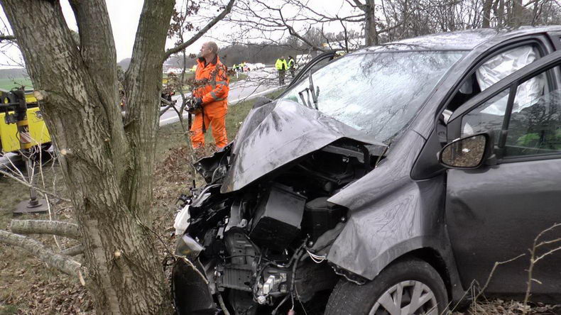 | Wilsum (D): auto met paardenaanhanger slipt van de Uelsener Straße |