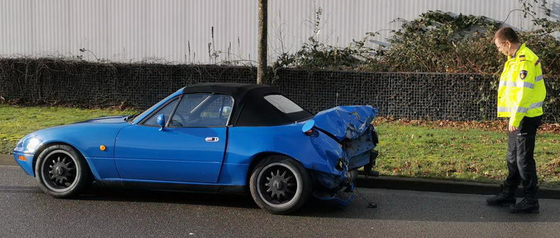 Op de Vliegveldweg is donderdagmorgen een Mazda Cabriolet uit de bocht gevlogen en in de flank van een trailer gereden. |