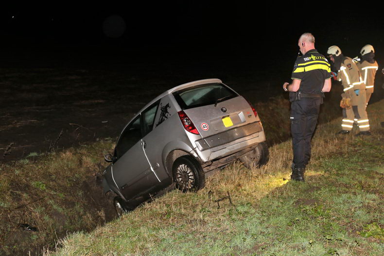 | A28: Toyota Yaris total loss tegen boom naast afrit |