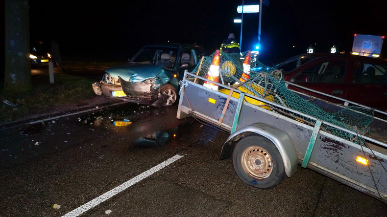 | Hoogeveen: sportwagen slipt tegen oplegger |