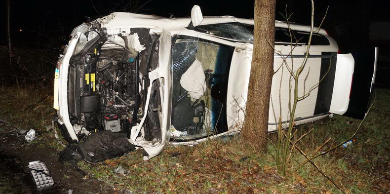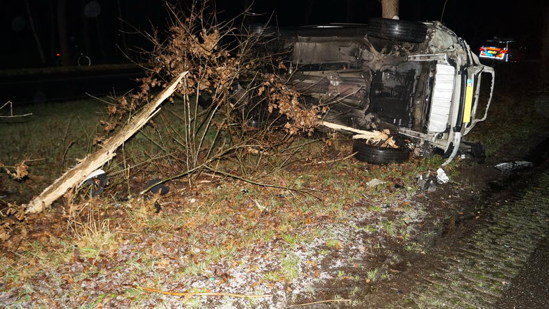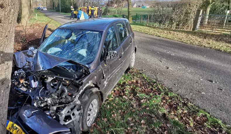 Nieuwleusen: auto slipt door hagelbui tegen boom aan de Oosterhulst |