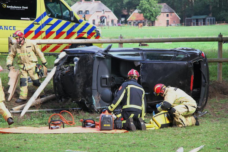 | Dinsdagmorgen rond kwart voor negen werd gemeld dat er op de Rijssenseweg (N752) een ongeval was gebeurd. Een personenauto was in een bocht naar links rechtdoor gegaan, dwars door een hek en tegen een boom, waarna de auto over de kop ging en op z’n linkerzij tot stilstand kwam in een weiland met paarden. De bestuurder is door de brandweer uit het wrak befrijd en vervolgens met spoed per ambulance naar een ziekenhuis vervoerd |