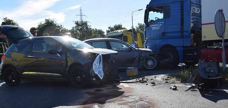 | Vriezenveen: truck en twee personenauto's beschadigd bij aanrijding op kruising |