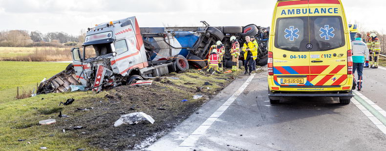 Bij een ernstig ongeluk op de N36 bij Beerze is woensdagmiddag een dode gevallen. De bestelbus kwam vrijwel frontaal in botsing met de vrachtwagen. De ravage na de aanrijding is enorm: het wegdek is bezaaid met wrakstukken en glassplinters. Ook is een deel van het wegdek beschadigd geraakt. De ANWB verwacht dat de wegafsluiting nog tot ongeveer 20:00 uur gaat duren. Het verkeer vanaf Mariënberg, dat vast kwam te staan achter het ongeluk, is weggeleid door Rijkswaterstaat. Het verkeer wordt bij de afsluitingen omgeleid en geadviseerd via Hardenberg te rijden. |