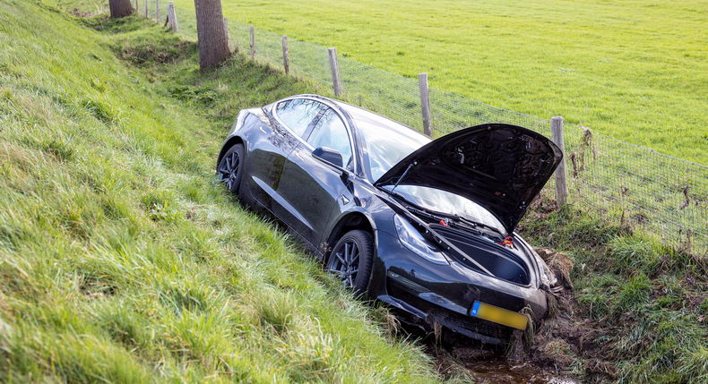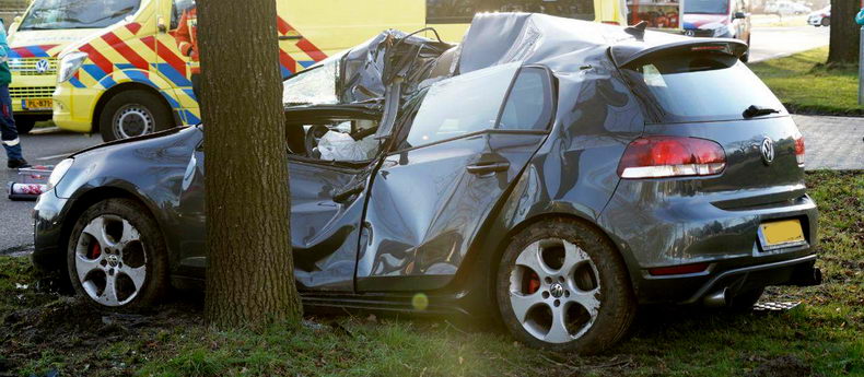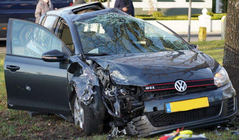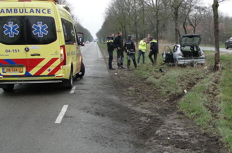 | Oosterhesselen: auto tegen boom aan de Burgemeester De Kockstraat |