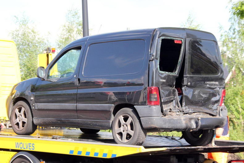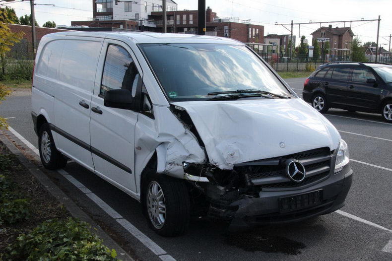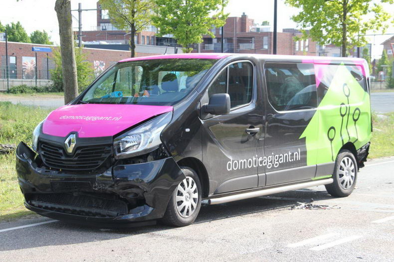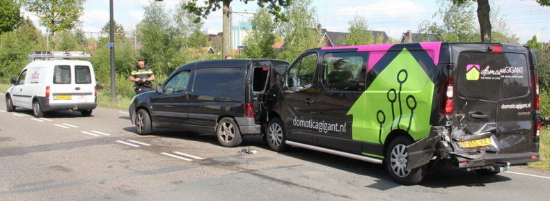 | Rijssen: drie bedrijfsauto's in de kreukels door kettingbotsing |