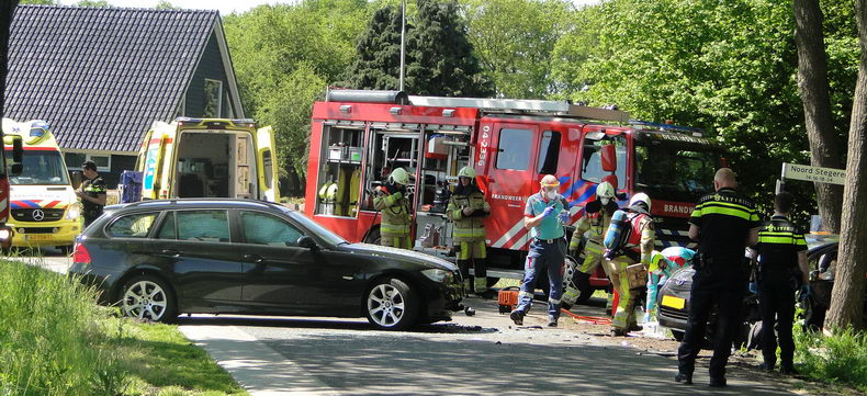 Brandweer, politie en twee ambulances werden woensdagmiddag rond kwart voor een naar de Noord Stegeren in het buitengebied van Dedemsvaart gestuurd in verband met een verkeersongeval. Het bleek te gaan om een semifrontale aanrijding nabij huisnummer 12, waarbij een Toyota Yaris MPV en een BMW stationwagen uit de 3-serie betrokken waren. |