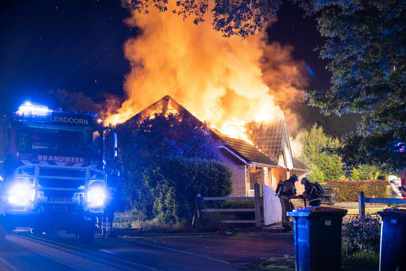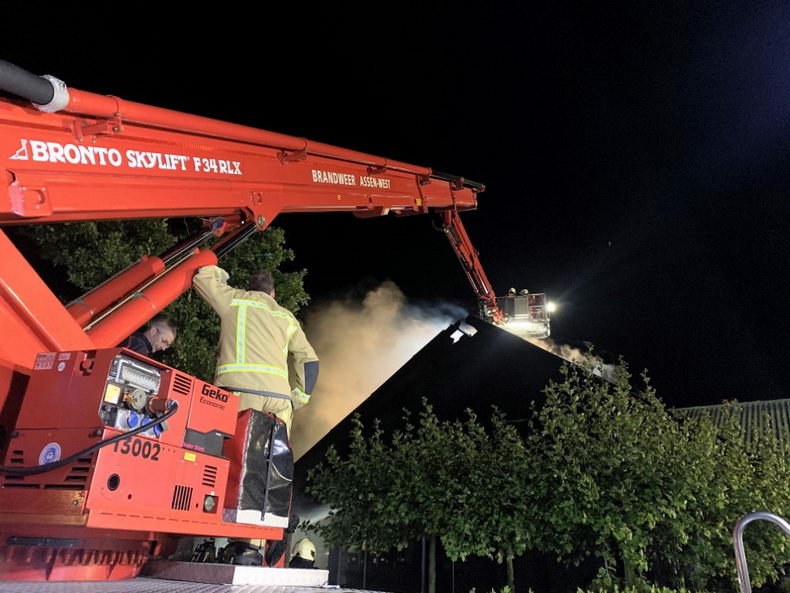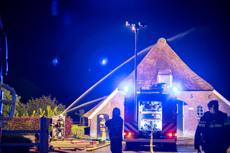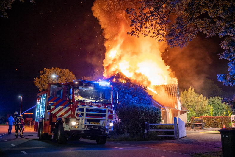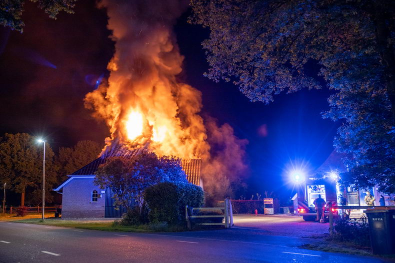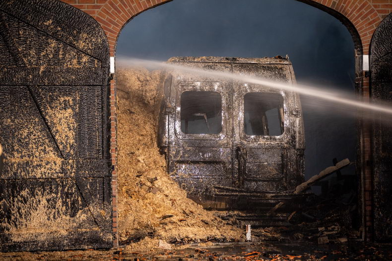 | De zondag was bijna voorbij, toen het noodlot toesloeg in Lemele. Een bewoner ontdekte even na half twaalf brand in een schuur aan de Lemelerweg, vlak bij de kruising van de Alferinksteeg met de Öldersweg. Hij zag rook uit zijn schuur komen en ontdekte dat een daarin staande camper in brand stond. Hij vertelde dat deze aan de lader stond, maar of dit de oorzaak is en of de brand ook daadwerkelijk bij de camper begonnen is, is nog onduidelijk. De brandweer werd ingeschakeld en samen met buren werd een bluspoging ondernomen met een brandblusser en een tuinslang. Aanvankelijk was er enkel dikke rook te zien die zich uit het dak naar buiten werkte, maar nog voordat de eerste brandweerwagen arriveerde sloeg het vuur al metershoog uit het dak. De brandweer begon direct met blussen en schaalde op, maar er was geen redden aan. In de buurt werd even gevreesd dat er paarden in de schuur zouden staan, maar al snel bleek dit niet het geval. Die stonden veilig in de ertegenover gelegen schuur. Voordat de brandweer de naastgelegen riet gedekte woonboerderij -die amper tien meter van de schuur staat- nat kon houden, werd daarvoor een beregeningsinstallatie ingezet. Naast de camper lag in de schuur een grote hoeveelheid vlas. Van alle kanten en met behulp van een hoogwerker is het vuur onder controle gebracht. Na de deuren open te hebben gebroken is de uitgebrande en door hitte vervormde camper met een trekker naar buiten getrokken. Een mobiele kraan is ingezet om het een en ander uit elkaar te trekken en de nodige sloopwerkzaamheden te verrichten. Ongeveer een maand geleden ging amper een kilometer verderop aan dezelfde weg een woonboerderij in vlammen op. |