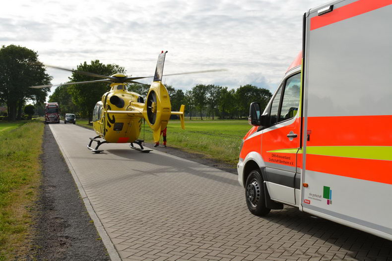 | Een Poolse vrachtwagenchauffeur (38), die voor een Duitse transportonderneming uit Uelzen werkt, reed vrijdagmiddag tegen half zes op de Oelstraße in de richting van Schoonebeek. Toen hij afsloeg naar de Aatalstraße, zag hij twee hem tegemoet komende motorrijders over het hoofd Eén van de twee –een 22-jarige inwoonster van Denekamp- kwam semifrontaal in botsing met de vrachtwagen en liep daardoor zeer ernstig letsel op. De vrouw is met een traumahelikopter naar het ziekenhuis in Enschede gebracht. De andere motorrijder, die achter zijn vriendin reed en getuige was van het ongeval, liep een shock op, net als de trucker. De Oelstraße was gedurende de afhandeling van het ongeval en het politie-onderzoek afgesloten, maar enkele Nederlanders reden om de afzetting heen, zodat de politie meerdere surveillancewagen dwars op de weg moest plaatsen. |