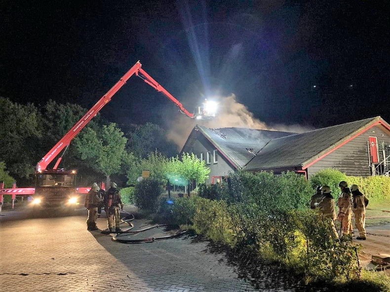 | Amen: brand in dak door blikseminslag in campinggebouw |