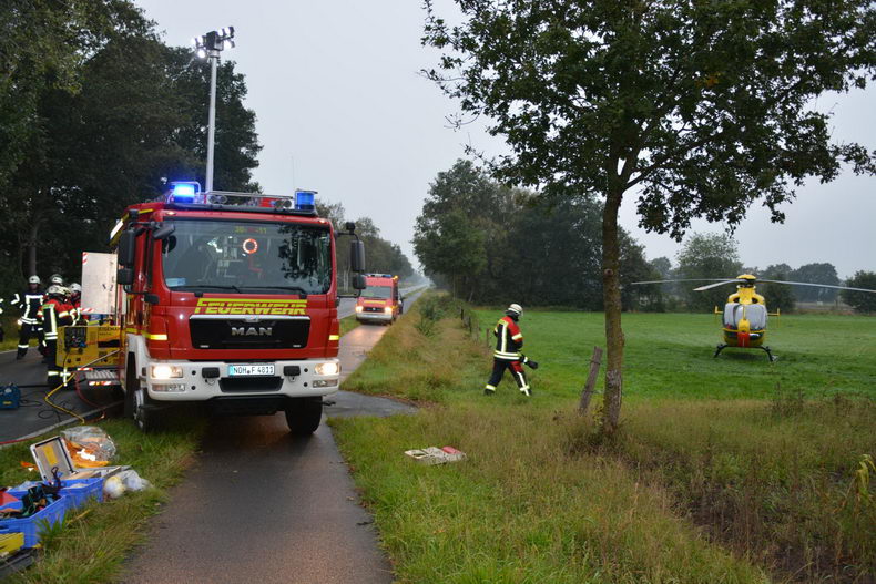 | Woensdagmiddag is een 66-jarige vrachtwagenchauffeur uit Uplengen, die op de Dalumer Straße in de richting van Wachendorf reed, tijdens de rit onwel geworden, waardoor de vrachtwagen verschillende tegenliggers schampte. De vrachtwagen kwam vervolgens links van de rijbaan in een greppel terecht en kwam tegen een boom tot stilstand. Ondanks reanimatiepogingen overleed het slachtoffer, maar waarschijnlijk niet ten gevolge van het letsel dat de man ten gevolge van het ongeval opliep. De Dalumer Straße was tot in de avonduren afgesloten vanwege de berging en de opruimwerkzaanheden. |