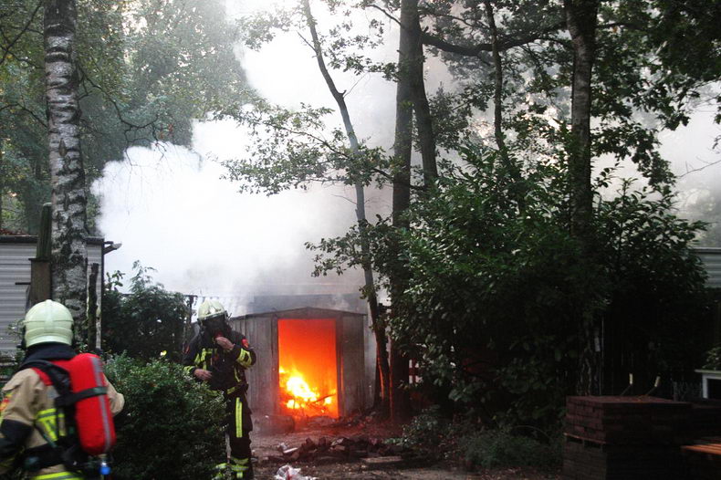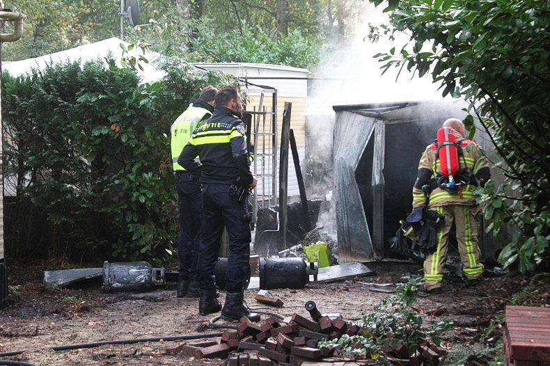 | Op camping Landgoed Kattenbergse Hoeve aan de Hogedijk in Markelo is vrijdagmorgen brand uitgebroken in een metalen schuurtje. De brandweer heeft zes gasflessen in veiligheid weten te brengen; één ervan was al aan het afblazen. Een caravan heeft schade opgelopen door hittestraling en een partytent vatte vlam, maar de brandweer slaagde er in deze vlammen tijdig te doven. De brandweer van Goor zette een waterwagen in om de bluswatervoorziening te waarborgen. |