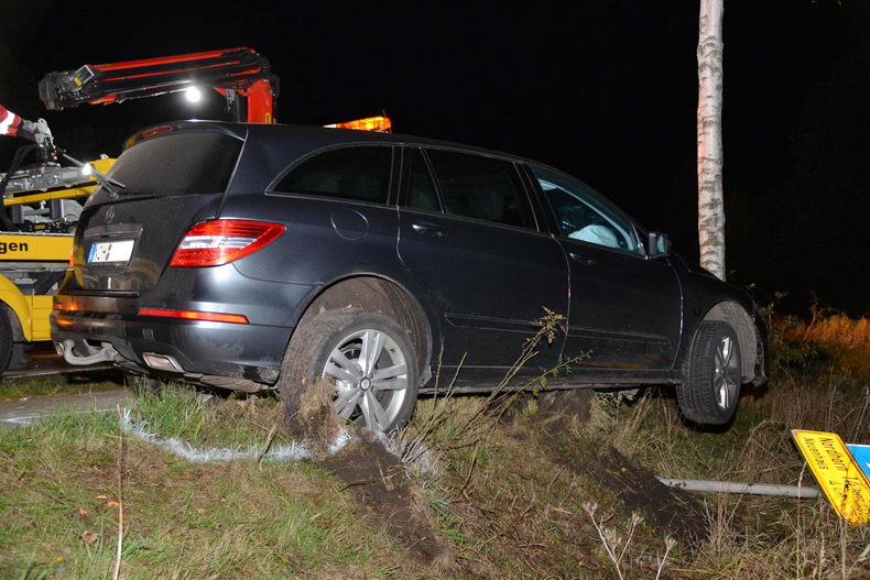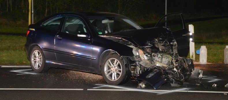 | Twee personen met levensbedreigend letsel en twee zwaarbeschadigde voertuigen: dat was de balans van een verkeersongeval in Uelsen. Zondagavond tegen half negen wilde de bestuurster (48) van een Mercedes M-Klasse ter hoogte van de Neuenhauser Straße keren op de B403, maar lette niet op het verkeer. De bestuurder (43) van een Mercedes C 180 kon niet meer tijdig remmen, waardoor deze auto zich vol in de linkerflank van de M-Klasse boorde. Vervolgens schoot deze wagen de berm in en reed een wegwijzer plat, maar het in beton gegoten obstakel zorgde er wel voor dat de M-Klasse niet de greppel in schoot en kantelde. De twee zeer ernstig gewonde automobilisten zijn naar ziekenhuizen in de regio overgebracht. De B403 was tot ver na middernacht afgesloten vanwege reddings- en bergingswerk. Ingenieursbureau Diekel verzamelde de gegevens van het incident met het Phidias-procedé, ter ondersteuning van de politie. De Uelsener brandweer ruimde uitgelopen vloeistoffen op en zorgde voor verlichting voor de ongevalsanalyse. De firma Rakel haalde de wrakken op. |