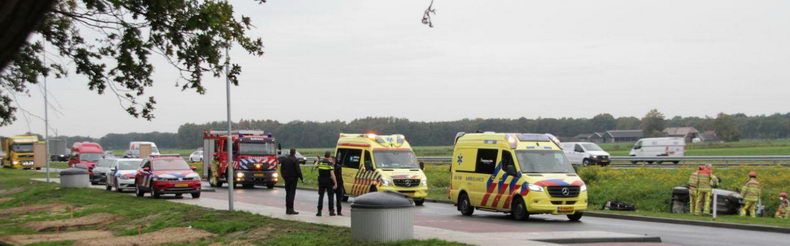 | Tegen vieren dinsdagmiddag werden hulpverleners opgeroepen omdat er een auto van de A1 geraakt was tussen Bathmen en Holten. Het voertuig was op de afrit naar parkeerplaats Boermark in de berm beland en op z’n linkerzij in de sloot tot stilstand gekomen. De brandweer stond het ambulancepersoneel bij met het uit de auto halen van de twee inzittenden, die daarna beiden naar het ziekenhuis zijn overgebracht. |