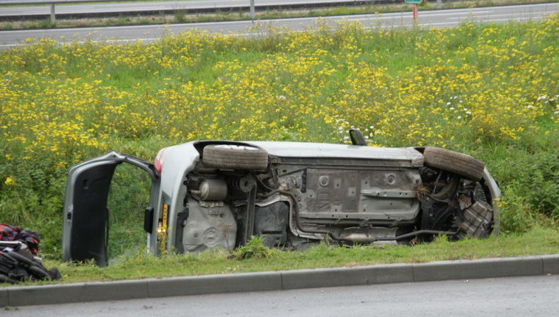 | A1: auto kantelt bij parkeerplaats Boermark de sloot in |