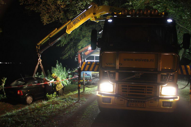 | Maandagmiddag om kwart voor zes werd gemeld dat er een auto ter hoogte van de Meenweg in het Twentekanaal terecht was gekomen. De bestuurder had vergeten zijn Opel Astra op de handrem te zetten, waardoor het voertuig van de helling het water in rolde. Rijkswaterstaat lokaliseerde de wagen met behulp van een sonarboot, zodat een duiker er een kabel aan kon bevestigen en een berger de auto uit het water kon takelen. Rond kwart over elf stond de auto -total loss- weer op het droge. |