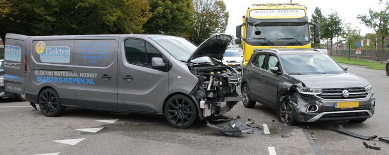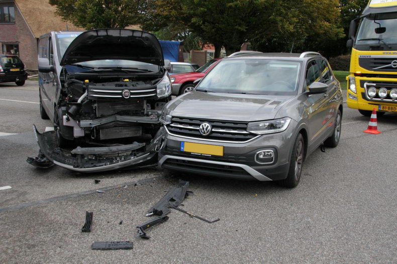 | Woensdagmiddag tegen vier uur zijn op de kruising Nijverdalseweg - Reggesingel (N350) in Rijssen een Fiat bestelbus en een Volkswagen T-Cross SUV met elkaar in botsing gekomen. De bestelbus reed van de Nijverdalseweg de (voorrangsweg) Reggesingel op, waar de VW van links aan kwam rijden. Beide voertuigen liepen flinke schade op en moesten door een bergingsbedrijf worden opgehaald. De inzittenden bleven ongedeerd. |
