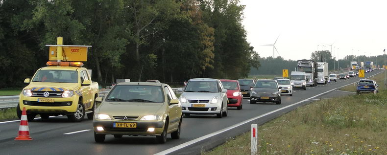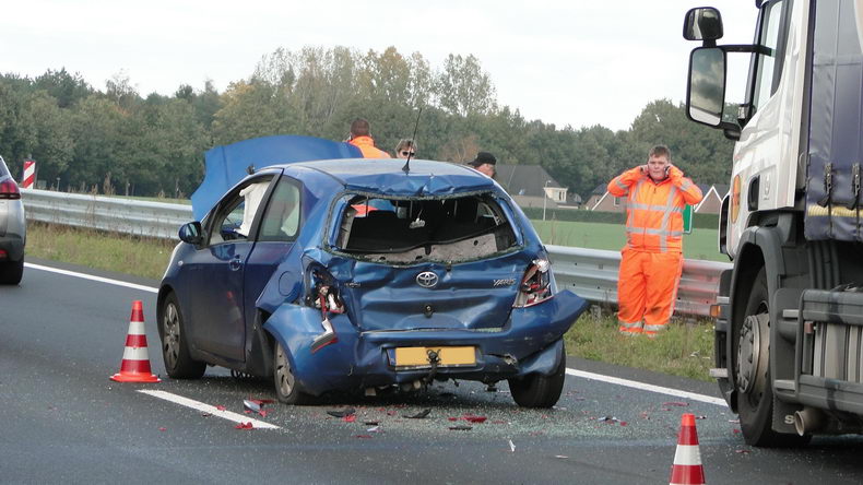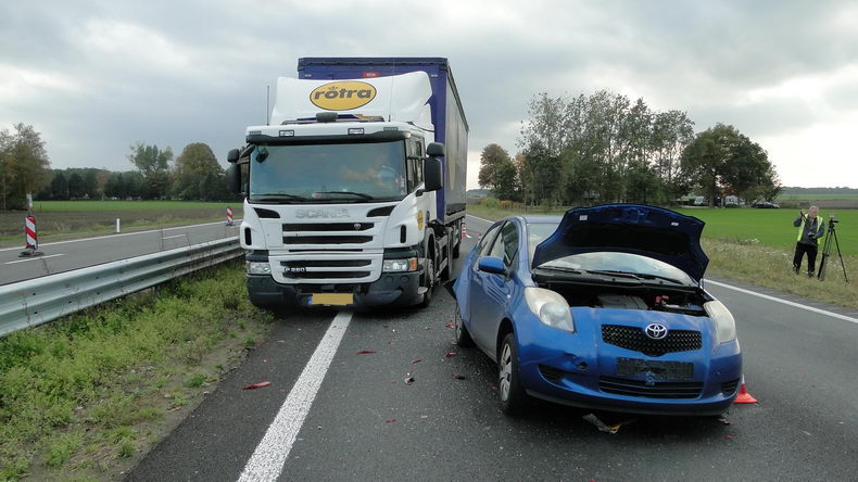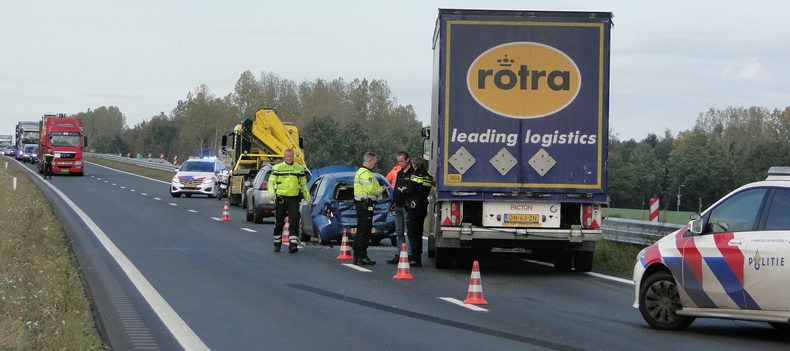 | Op het N34-traject Coevorden - Holsloot, waar hard aan de weg gewerkt wordt, ontstond vrijdagmiddag rond drie uur een kettingbotsing op de rijbaan in de richting Emmen. De chauffeur van een trekker met oplegger had niet tijdig in de gaten dat het verkeer vóór hem stil stond. De vrachtwagen klapte daardoor op de achterzijde van een Toyota Yaris, die vervolgens tegen de achterkant van een Peugeot 2008 geduwd werd. De bestuurder van de Toyota is voor onderzoek naar een ziekenhuis overgebracht; de overige betrokkenen kwamen met de schrik vrij. Het verkeer in de richting van Emmen werd omgeleid vanaf de afrit Coevorden-Noord / Emlichheim omgeleid naar Dalen, waardoor het in en rond dat dorp erg druk werd. De Peugeot was onherstelbaar beschadigd. |