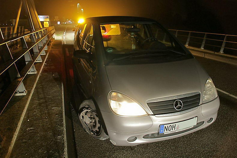 | Zondagmiddag reed een46-jarige Nederlander met zijn groene Renault op de A31 richting Emden vlak voor de afslag Geeste tegen wegafzettingsmateriaal van werk in uitvoering. Hoewel het afzettingsmateriaal en de auto schade hadden opgelopen, zette de man zijn rit voort. Oplettende getuigen waarschuwden de politie, die direct een zoekactie startte en de man oppakte. Zijn rijbewijs werd in beslag genomen en hij moet zich voor de rechter verantwoorden |