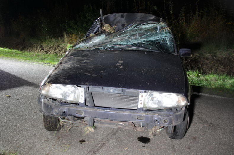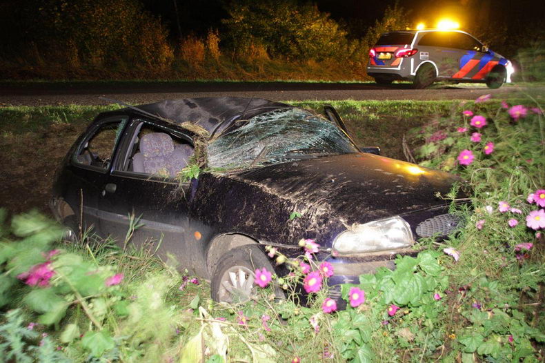 | Zaterdagavond rond half tien is een Ford Fiesta in een scherpe bocht naar rechts van de Brandweg geraakt, over de kop gegaan en met de achterwielen in een sloot tot stilstand gekomen. De bestuurder wist zelfstandig uit het wrak te komen en liep naar een woning om hulp te halen. Hij is met spoed naar een ziekenhuis gebracht. |