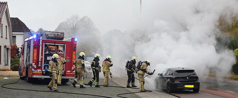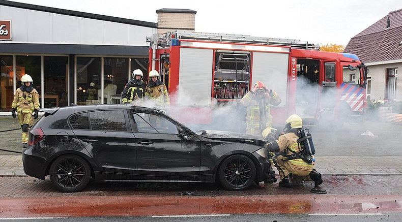 Dat was flink schrikken voor een gezin, toen er zondagmiddag rond vier uur tijdens een rit op de Hoofdweg onder de motorkap van de auto brand uitbrak. Direct werd de auto stilgezet en 112 gebeld. |