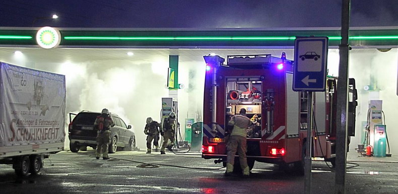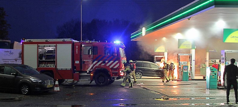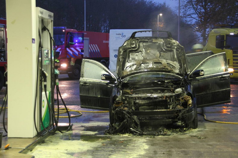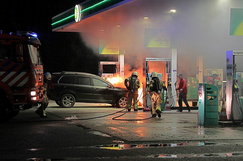 | A1: Volvo in brand in tankstation |
