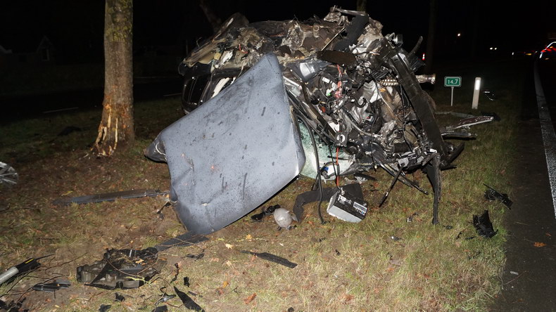 | N377: Volkswagen Passat onherkenbaar na slippartij |