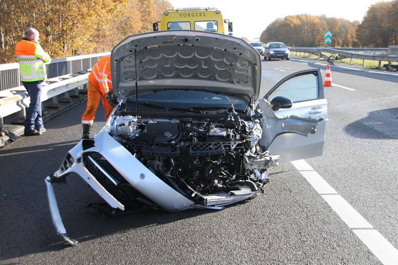 | Zondagochtend 21 november is tegen half twaalf een Mercedes personenauto tegen de vangrail in de rechterberm van de A35bij Bornerbroek gebotst. Vervolgens schoot de dure auto naar links, ramde daar de vangrail en schoot daarna weer naar rechts, waar hij tot stilstand kwam. De rijbaan lag na deze capriolen vol wrakstukken en er ontstond een lange file van Borne-West in de richting van Almelo. De vangrail zal vandaag vervangen moeten worden, waardoor oponthoud kan ontstaan. |