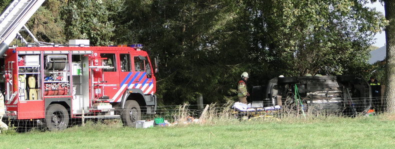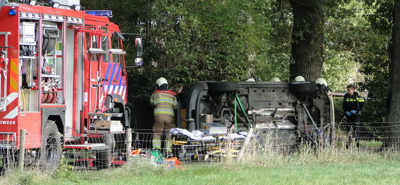 | De blusploeg van Balkbrug kreeg vrijdag tegen enen 's middags opdracht naar Den Oosterhuis te rijden, waar ter hoogte van huisnummer 13 een verkeersongeval gebeurd was. Op deze doodlopende zijweg was een Volkswagen Tiguan tegen een boom gereden en gekanteld. Aan de brandweerlieden de opdracht de bejaarde en gewonde bestuurder uit de auto te helpen. Nadat dat gebeurd was, werd het slachtoffer op een brancard naar een ambulance gebracht, waar hij behandeld werd. De man is vervolgens naar een ziekenhuis overgebracht. |
