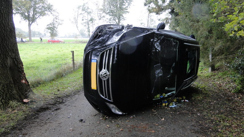 | Balkbrug: auto kantelt na botsing tegen boom |