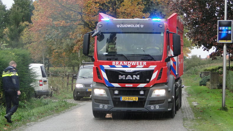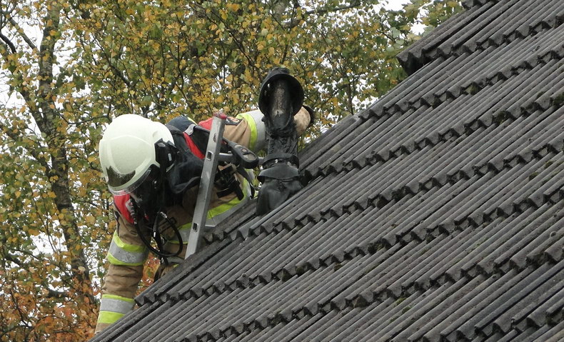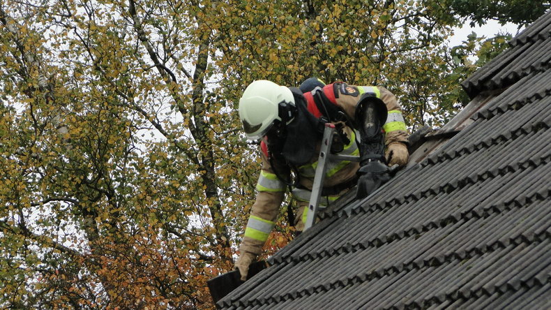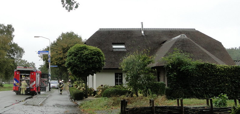 | Donderdagmiddag om 13:39 kregen de blusploeg van Slagharen en de watertankwagen van Zuidwolde opdracht naar de Hoogeveenseweg in Schuinesloot te rijden waar bij de kruising met de Braambergerweg brand was uitgebroken in een vrijstaande woning. Bij aankomst kwam er witte rook onder de dakpannen vandaan. Snel handelen was nodig, want naast de woning staat een pand met een rieten kap. De brand, die was begonnen in de CV-ketel, was al overgeslagen op het dak, maar kon snel geblust worden. De rookgasafvoer was al gedeeltelijk gesmolten en er moesten voor alle zekerheid wat dakpannen verwijderd worden, maar toen was het leed geleden. De bewoner meldde dat de 19 jaar oude ketel onlangs nog een onderhoudsbeurt had gehad. Er vielen geen slachtoffers, op een verkeerskegel na... |