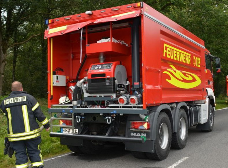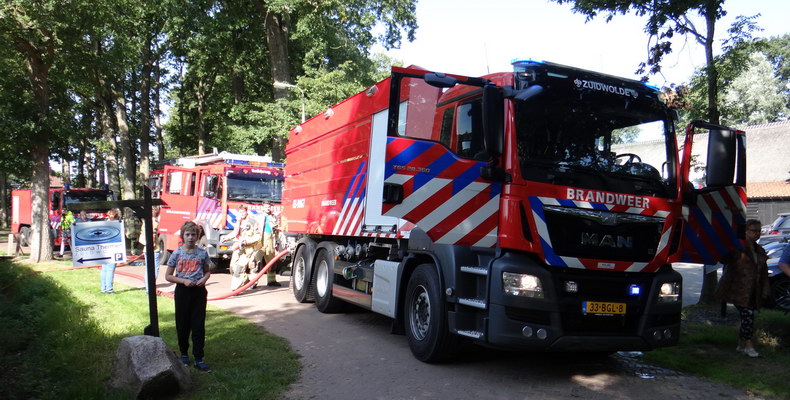 ![]() Het gisteren in gebruik genomen blusvoertuig. Bluswatertank 14.000 liter! |