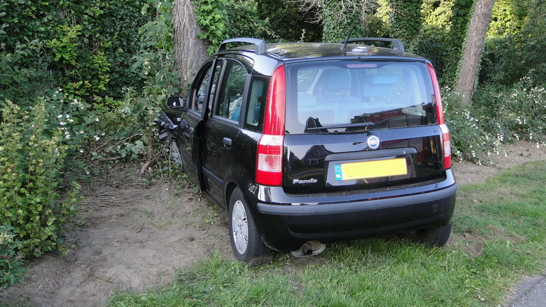 Een Fiat Panda is vrijdag in het begin van de avond op de Splitting in Emmen Barger Oosterveld tegen een boom gebotst. |