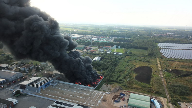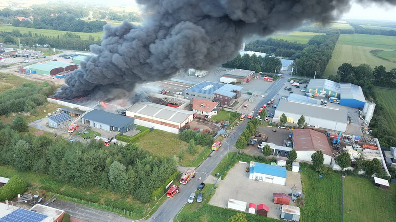 In Twist (D) is vrijdagmiddag rond twee uur brand uitgebroken in een stapel versnipperde banden op het terrein van een recyclingbedrijf voor oude banden aan de Dieselstraße |