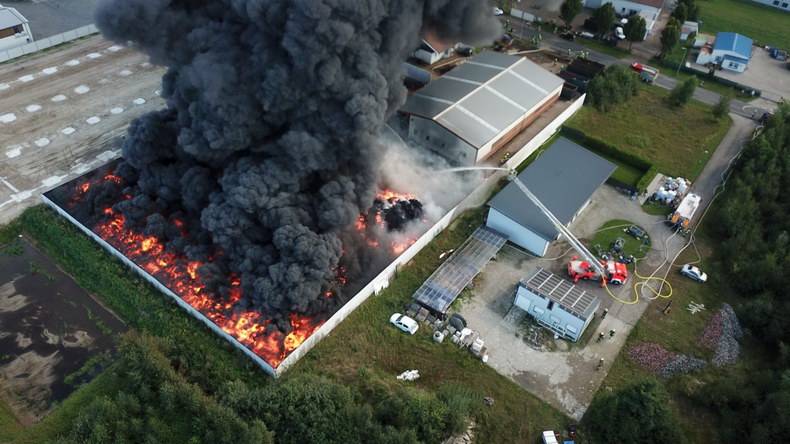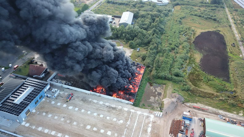 | Twist (D): enorme rookwolken en vuurzee in berg versnipperde banden bij recylingbedrijf |