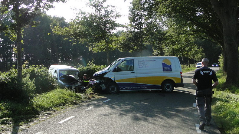 Tegen kwart over vijf dinsdagmiddag zijn twee bedrijfswagens op de Braambergerweg in Kerkenveld frontaal in botsing gekomen. |