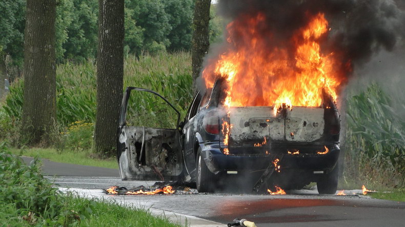 | Holtheme: reeks enorme steekvlammen tijdens autobrand op de Vilsterborg |