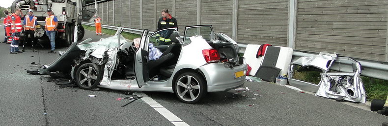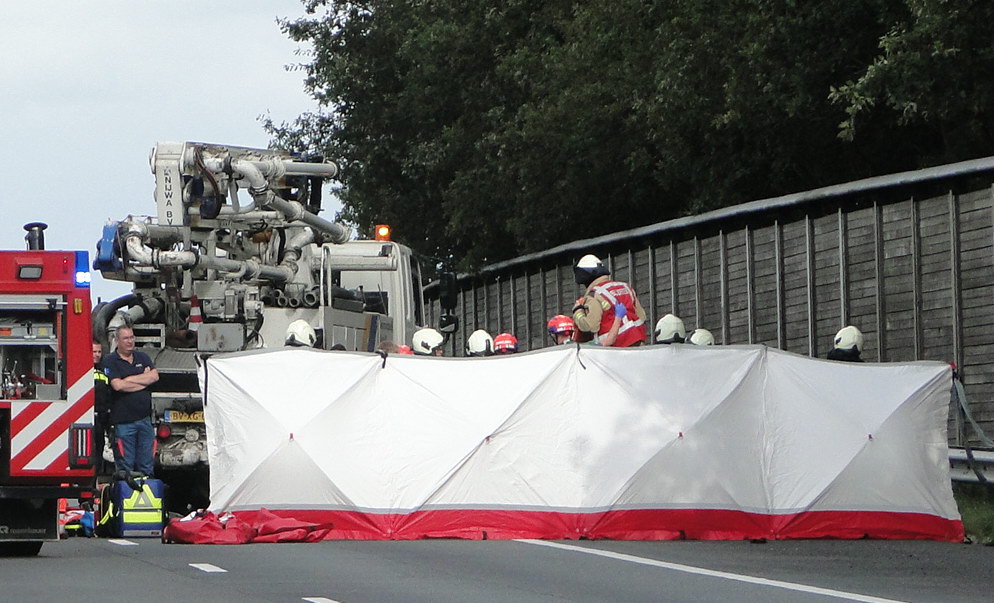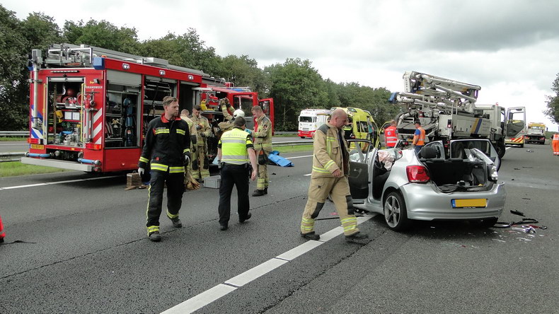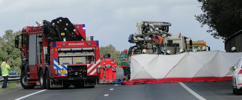 | A28: VW knalt op achterzijde betonpomp achter in file; zwaargewonde |