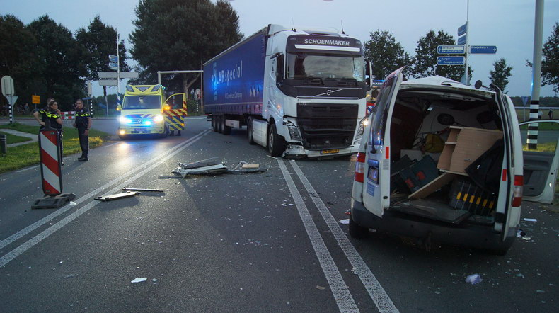 Vrijdagmorgen rond half negen vond er een aanrijding plaats tussen een bestelbus en een Poolse vrachtwagen op de kruising van de Industrieweg met de Bedrijvenweg. |