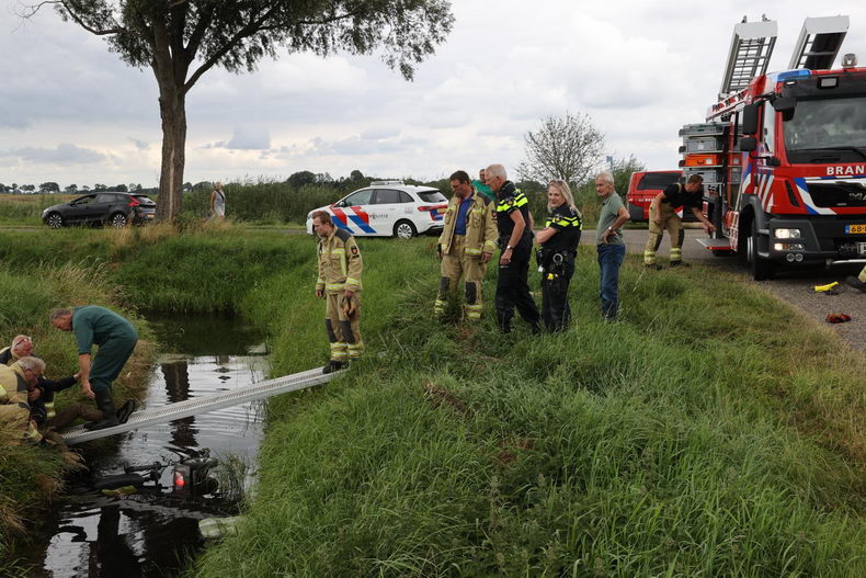 | Aan de Krommedijk even buiten Eexterzandvoort is maandagmiddag een inwoner van Gieten met zijn scootmobiel in een sloot beland. De onfortuinlijke scootmobilist kon niet om hulp bellen, omdat zijn GSM tijdens het ongeluk sneuvelde, maar hij werd ontdekt door een voorbijganger, die de brandweer waarschuwde. Brandweerlieden hebben de man vervolgens op het droge geholpen.De man bleek ongedeerd en is met een ambulance naar huis gebracht. De buitendienst van Gemeente Aa en Hunze heeft de scootmobiel opgehaald |