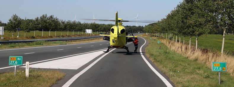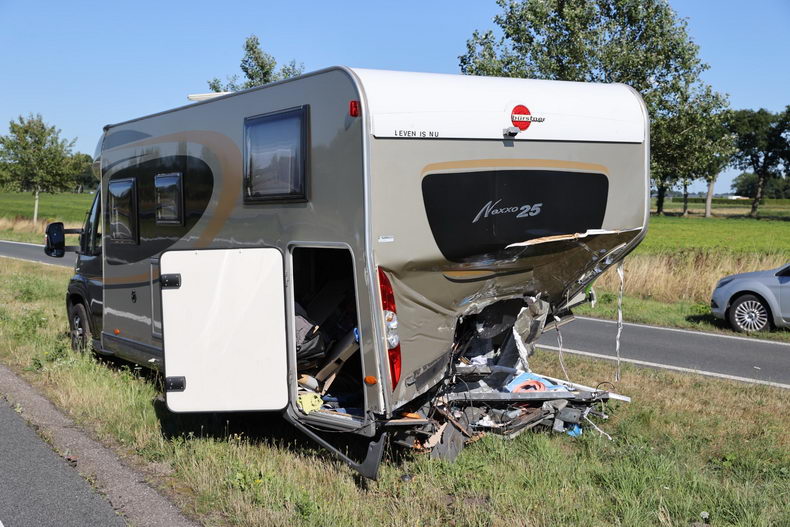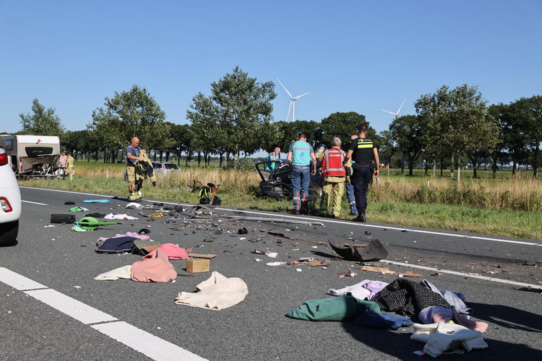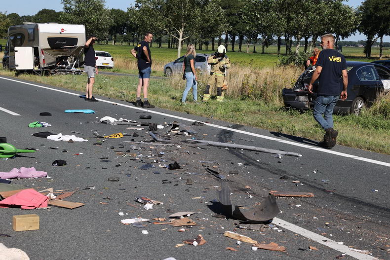 | Woensdagmiddag tegen vijven waren meerdere auto's , waaronder ee'n met een aanhangwagen en een camper, betrokken bij een verkeersongeval op de N33 ter hoogte van Gieterveen. In verband met dit voorval werden onder meer politie, drie ambulances, brandwer Gieten en een traumahelicopter ingezet. Een gewonde is met spoed naar een ziekenhiuis overgebracht.. Vier inzittenden, waaronder drie kinderen van een kleine personenauto die twee keer over de kop ging, liepen gelukkig geen ernstig letsel op.. Het gezin dat in de van achetern aangereden camper zatkwam -net alshun twee hondjes- ook met de schrik vrij. |