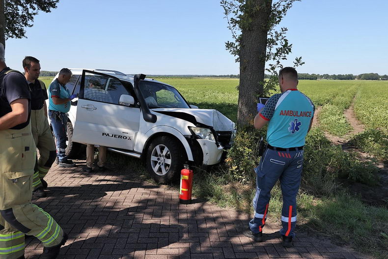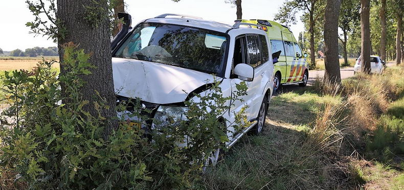 | Eesergroen: auto ramt boom, chauffeur gewond |