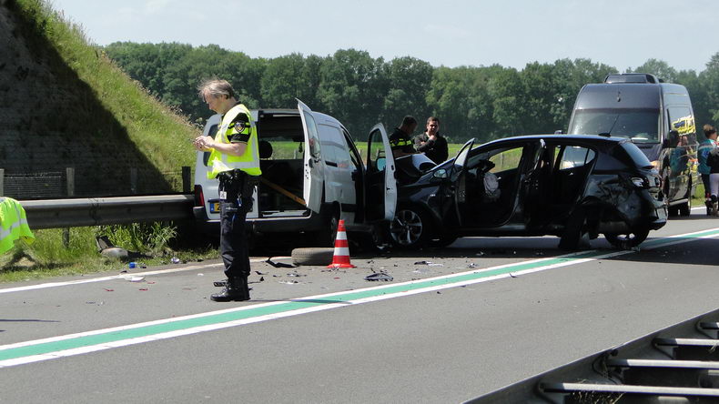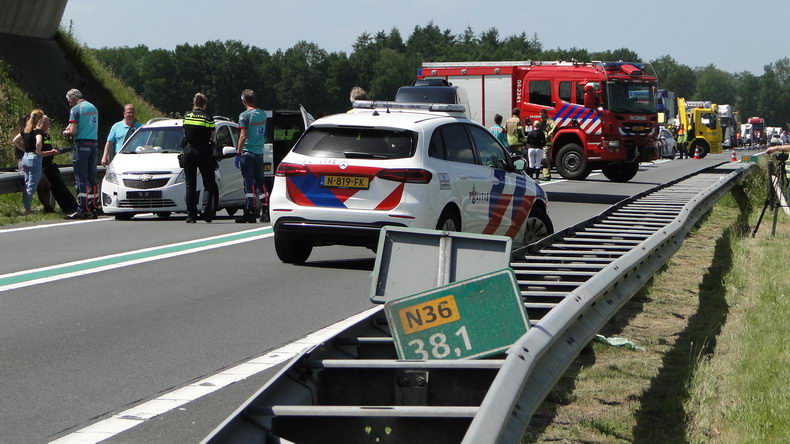 | De N36 is zaterdagmiddag urenlang afgesloten geweest tussen de rotonde bij Ommerkanaal en die bij de Witte Paal, nadat onder het viaduct van de Arriërveldsweg in Arriën een frontale botsing tussen een Peugeot Partner bestelwagen en een Opel personenauto had plaatsgevonden. Na deze aanrijding reed een witte Chevrolet Spark personenauo op de ravage in, waardoor de schade nog aanzienlijk groter werd. De vier inzittenden van de Opel Corsa zijn met ambulances naar ziekenhuizen overgebracht. Vanwege de wegafsluiting waren enkele vrachtwagenchauffeurs genoodzaakt urenlang te wachten, maar een minder geduldige trucker reed met de trekker met aanhanger de bijna acht kilometer naar de Witte Paal in zijn achteruit... |