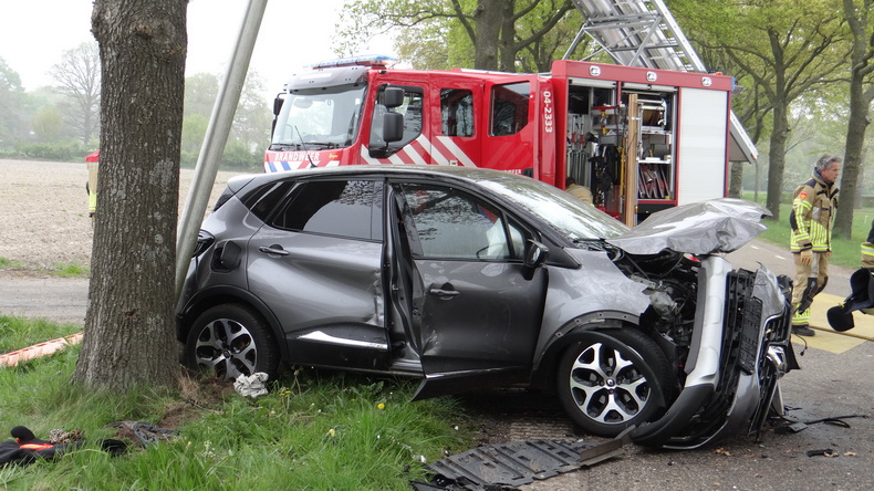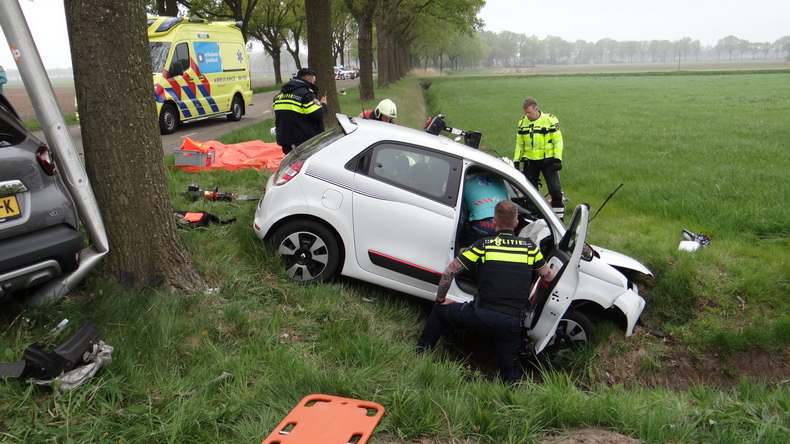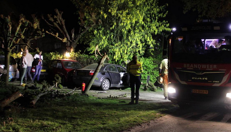 | Zuidwolde: auto beschadigt geparkeerde auto en bomen |